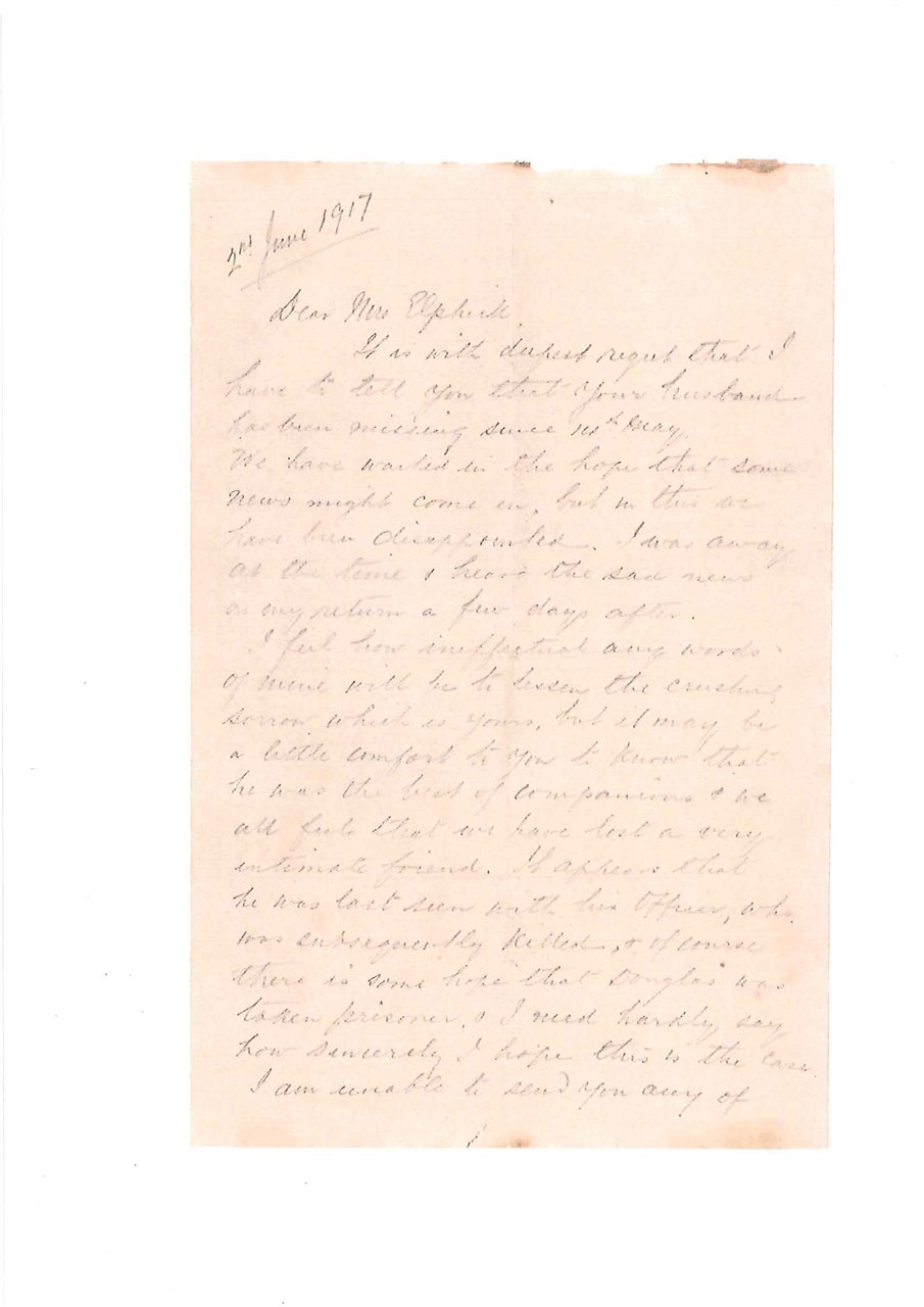 After arriving on the Western Front, Christopher was sent for service in France with the HAC and in 1917 was involved in his first major action as part of the 2nd Battle of Bullecourt. This battle formed part of the larger Arras offensive which the Allies had hoped would produce a decisive breakthrough. Instead, operations in the area were slow and costly. On 17th May, the HAC were stationed near Bullecourt, holding the recently gained village and preparing for the possibility of a counter-attack. This came soon after as the German forces quickly re-grouped and attacked the British positions, hoping that they would retreat. The British and Australian forces were able to hold off the attack, though this came at an incredibly high cost. The HAC lost 43 men in this battle alone, including Christopher whose body was never found. He remained listed as Missing in Action for two years before the War Office presumed that he had been killed in action.