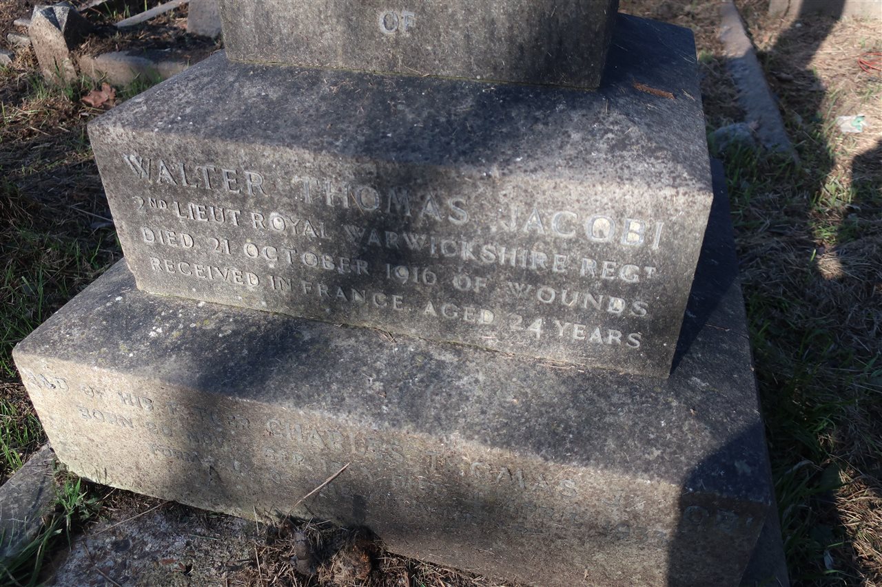 Walter Thomas Jacobi was a student at Alleyn’s and lived at 83 Stradella Road. He was prefect from 1907-1909 and was well known for his athletic ability in all departments of games. After leaving school, he was granted a commission and joined the Royal Lancashire Regiment as a 2nd Lieutenant. During his time with the regiment, he served overseas on the Western Front and took part in the Battle of the Somme during the final phase of the offensive in October 1917. It was during this action that Walter was wounded in battle. Shortly afterwards, he was transferred back home to England where he was sent to the Research Hospital in Cambridge to recover from his injuries. Unfortunately, he died from his wounds on October 21st 1916. Walter was buried with full military honours at Norwood Cemetery three days later.