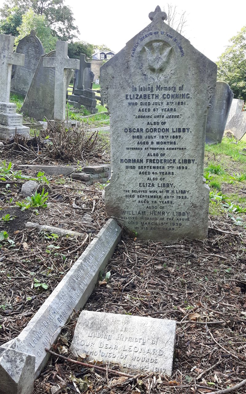 He is commemorated on his family tombstone in West Norwood Cemetery.