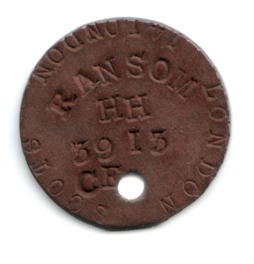 Harold returned to the front after the incident and continued to serve with the London Scottish for the remainder of the war. He married his wife, Ethel, in 1917 and returned home to her in England after the end of the conflict. They had four children together and Harold died in 1958. The images to the right show Harold's identity tag, and a picture of himself and Ethel with their first grandchild in 1948.