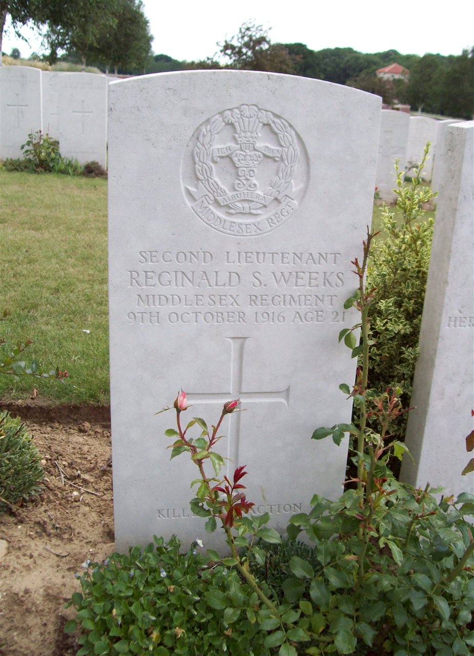 After joining his new battalion in France Reginald remained on the Western Front over the next few months and in October 1916 he took part in the Battle of the Transloy Ridges as part of the larger British Somme Offensive. Unfortunately, it was during this battle that he was killed in action on October 9th 1916. His mother, Louisa M Weeks, was informed of his death shortly afterwards. Reginald is buried at Lonsdale Cemetery, Authuille.